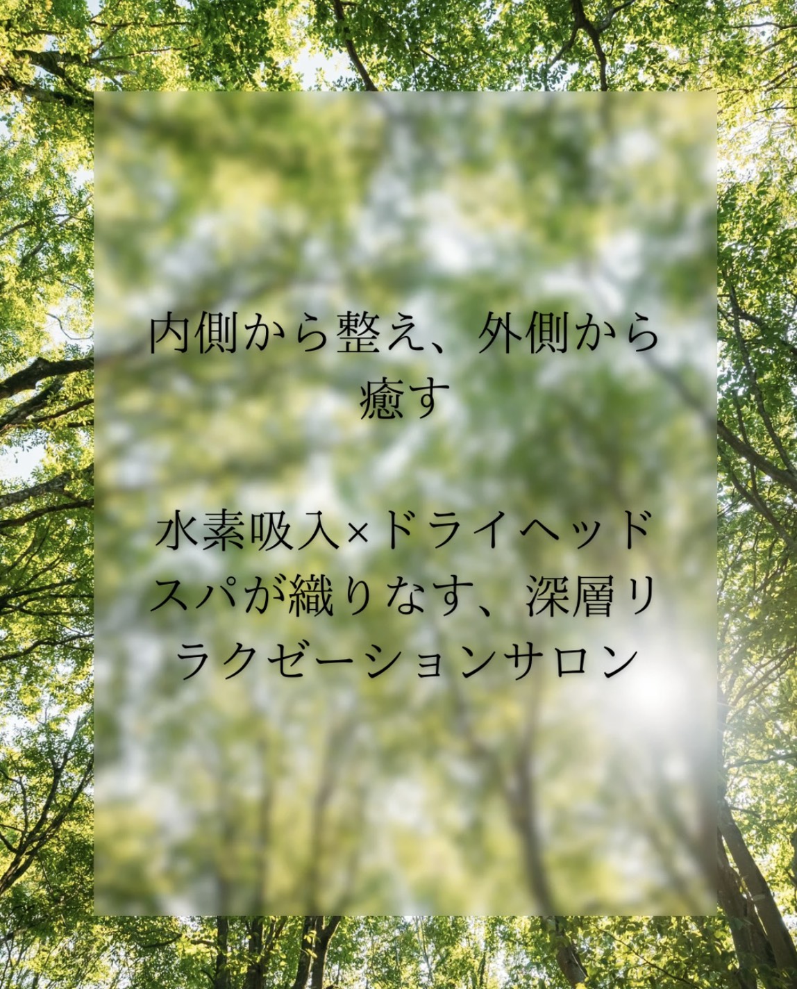 ※ぐっすり眠りたい方へ:ドライヘッドスパで頭皮をほぐし、水素吸入で体の内側からアプローチ。良質な睡眠をサポートします。